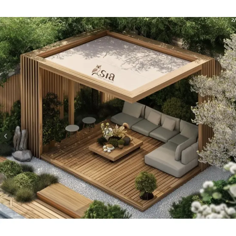 2. Des accessoires intelligents peuvent-ils être intégrés et quelles sont les options disponibles ? Il peut être parfaitement intégré à un éclairage ambiant LED, à des ventilateurs de plafond invisibles et à des systèmes de refroidissement par brouillard. Il peut également être équipé de rideaux en maille amovibles et de rideaux coupe-vent, permettant un ajustement flexible de l'espace clos pour répondre à de multiples besoins tels que l'éclairage, le refroidissement, la protection contre les moustiques et la protection contre le vent, améliorant ainsi l'expérience utilisateur en extérieur.